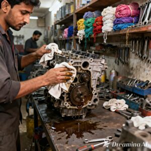 Karachi hosts some of Pakistan’s largest automotive parts and repair markets, including Saddar and Plaza areas. Every day, mechanics service engines, repair transmissions, and handle lubricants. Consequently, oil spills and grease stains remain unavoidable.