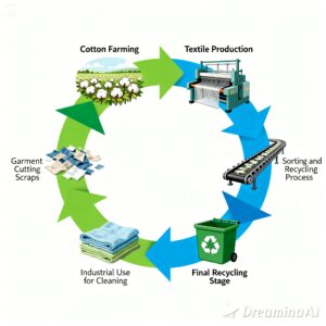 Explore the full product life cycle of a cotton rag and learn how it supports a circular economy through recycling, reuse, and sustainable textile practices.